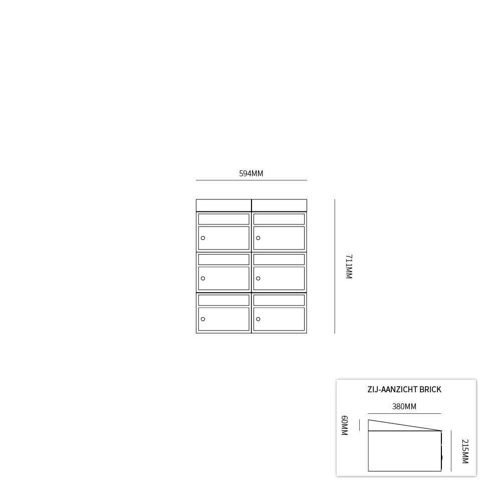 Per brievenbus is de Brick met zijn compacte maat van 295x215x380 (bxhxd) een perfect in te zetten brievenbus voor aan de wand, in de wand en op statief.
