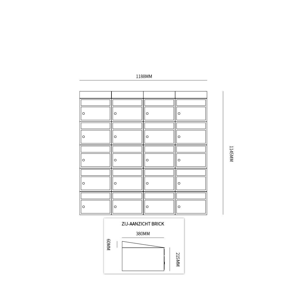 Per brievenbus is de Brick met zijn compacte maat van 295x215x380 (bxhxd) een perfect in te zetten brievenbus voor aan de wand, in de wand en op statief.