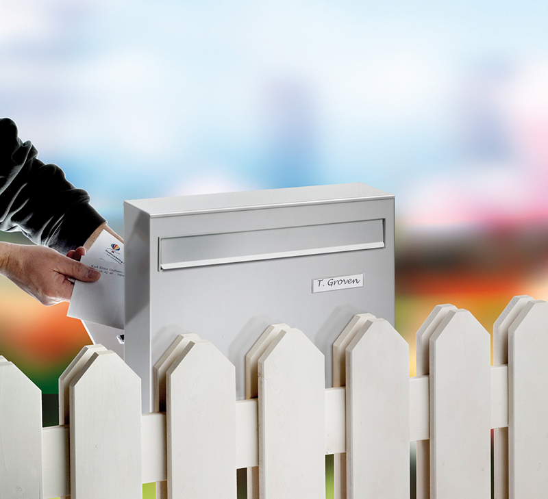 De post gaat via de inwerpopening (333*34mm.) aan de bovenkant naar binnen en u haalt de post d.m.v. het deurtje via het cilinderslotje incl.2 sleutels.