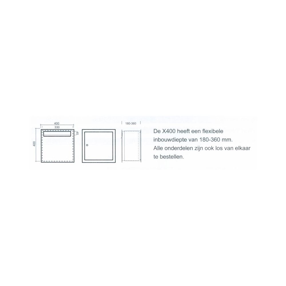 Inbouwbrievenbus Bobi Bobinox X400 RVS Koker Buiten Groot gemaakt van 1.5mm. dik gegalvaniseerd staal.